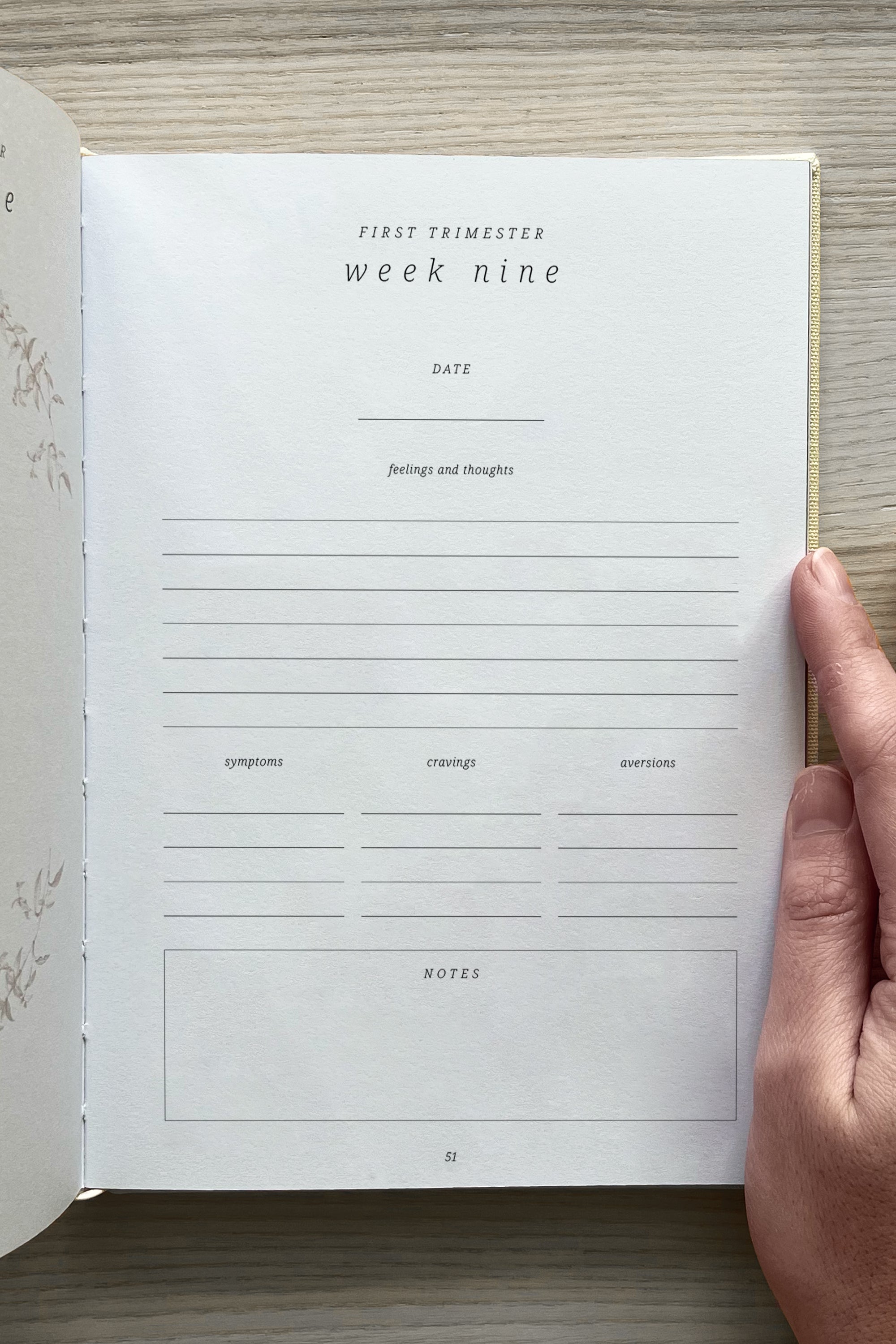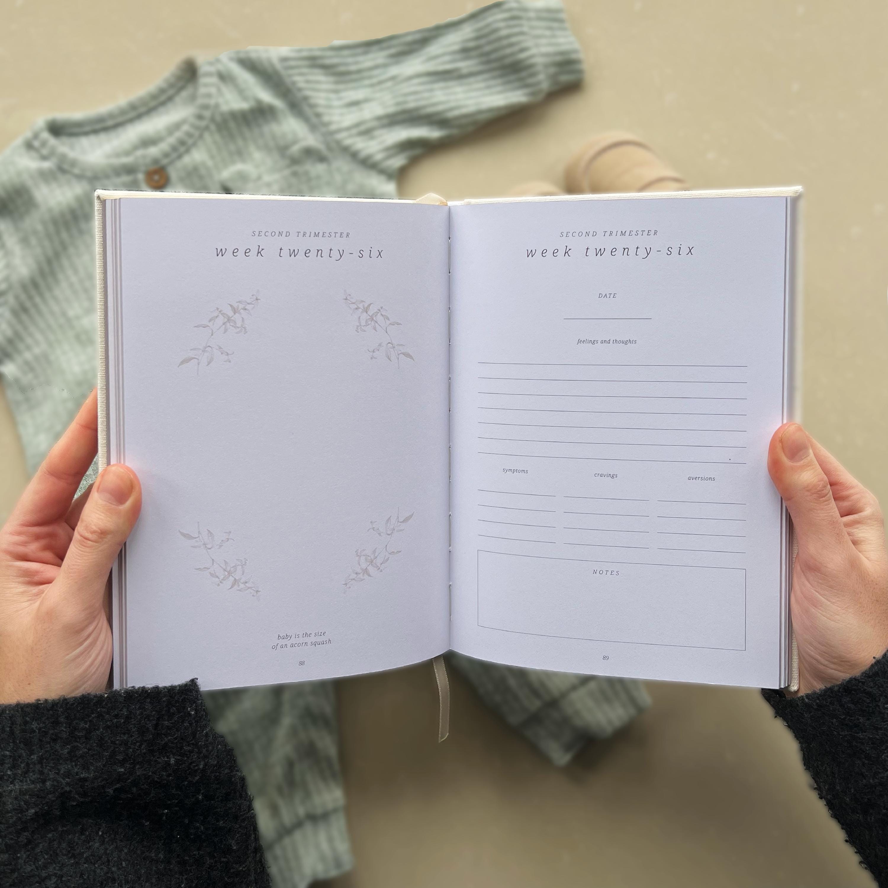 A beautifully crafted keepsake journal to record your pregnancy journey, from the first positive test to the day you bring your baby home — and all the moments in between.