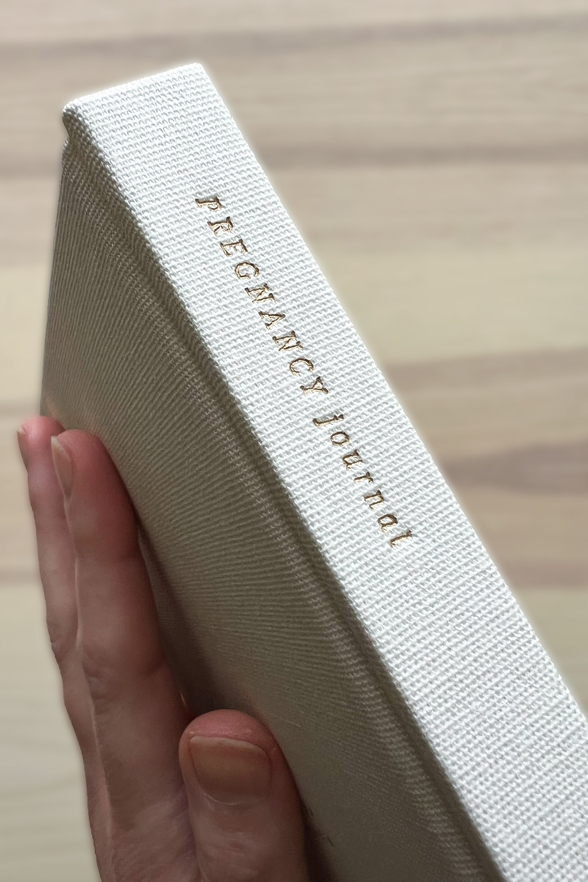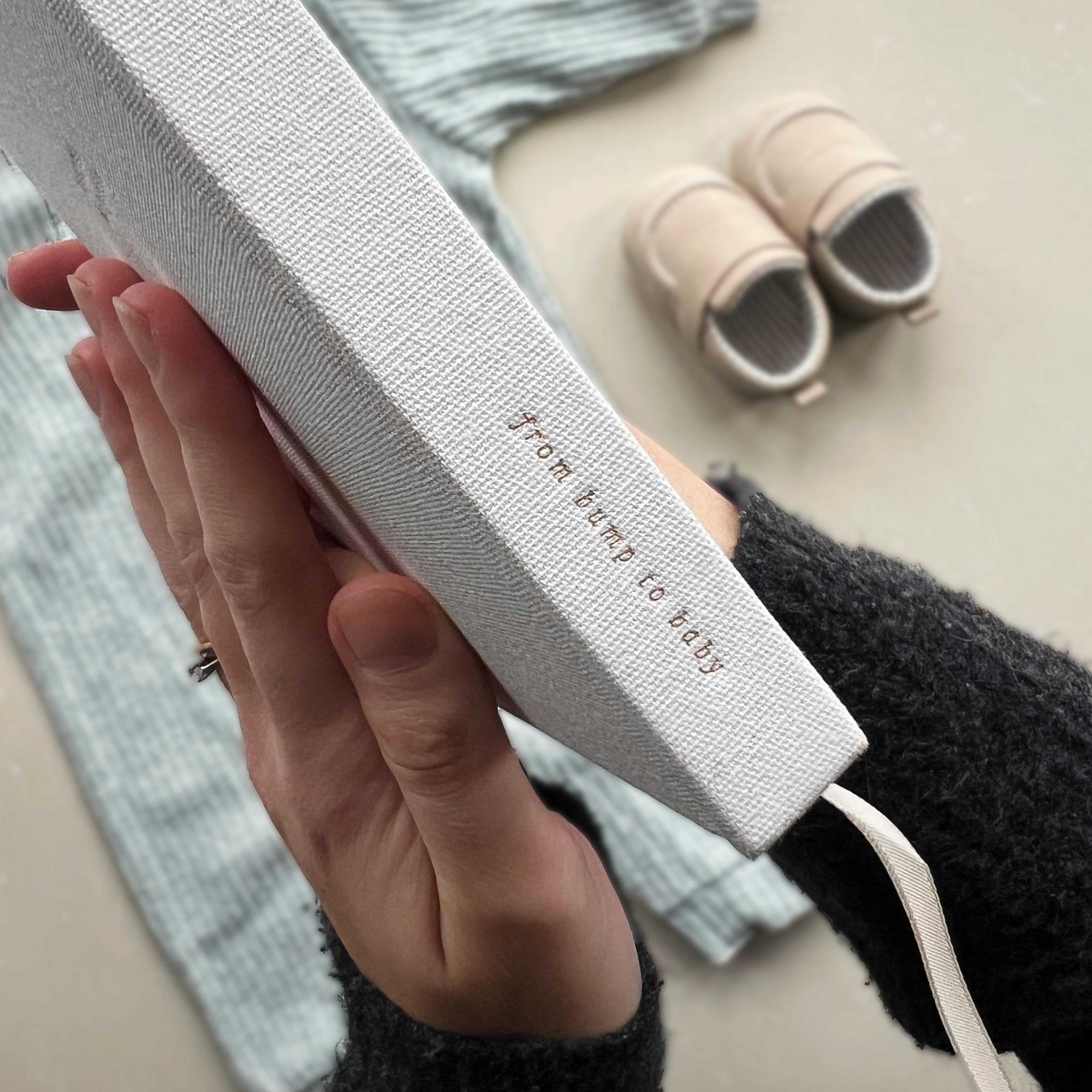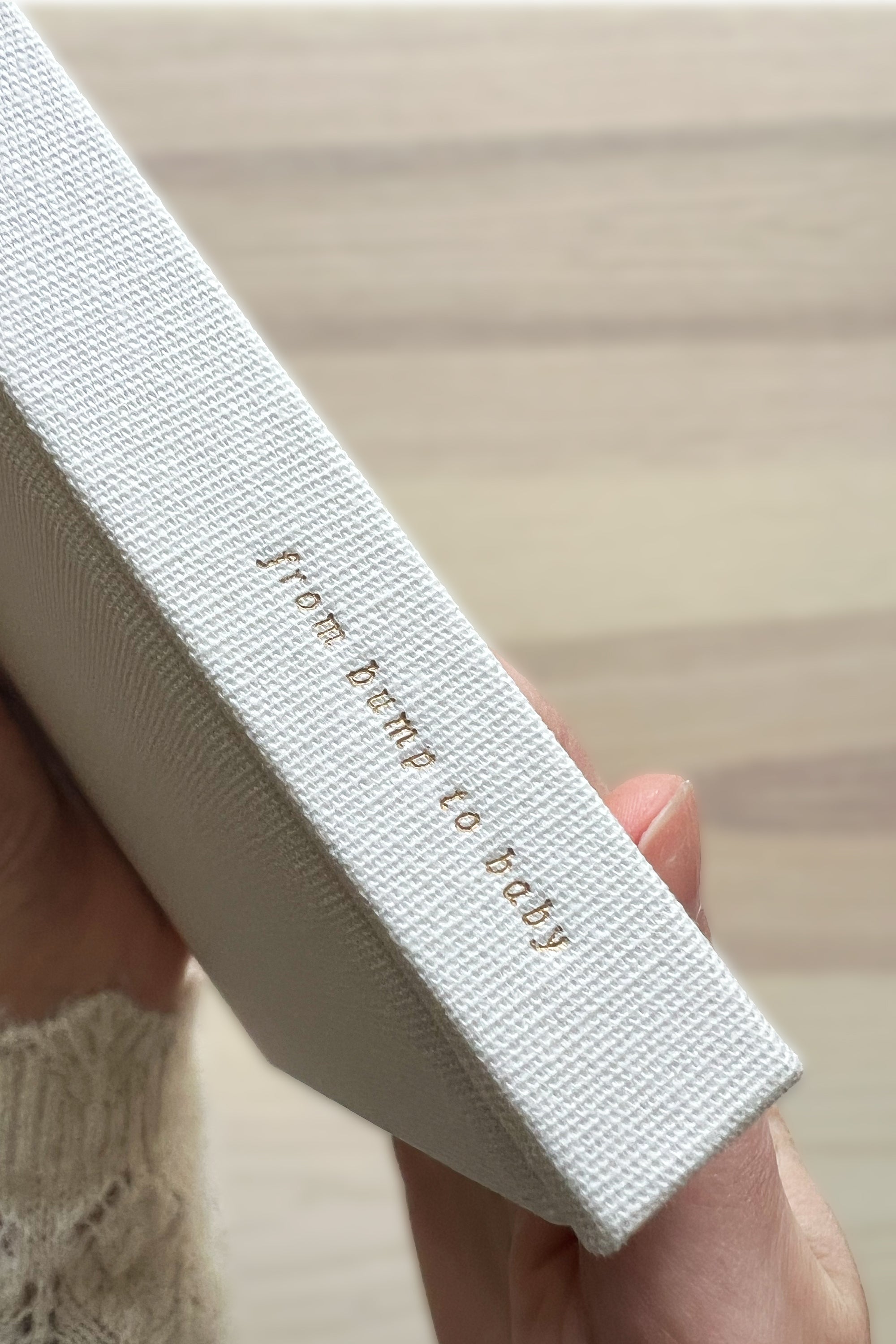Crafted with a hard linen cover and elegant embossed gold details, it features a minimal, refined design created to suit every expectant parent and to stand the test of time.