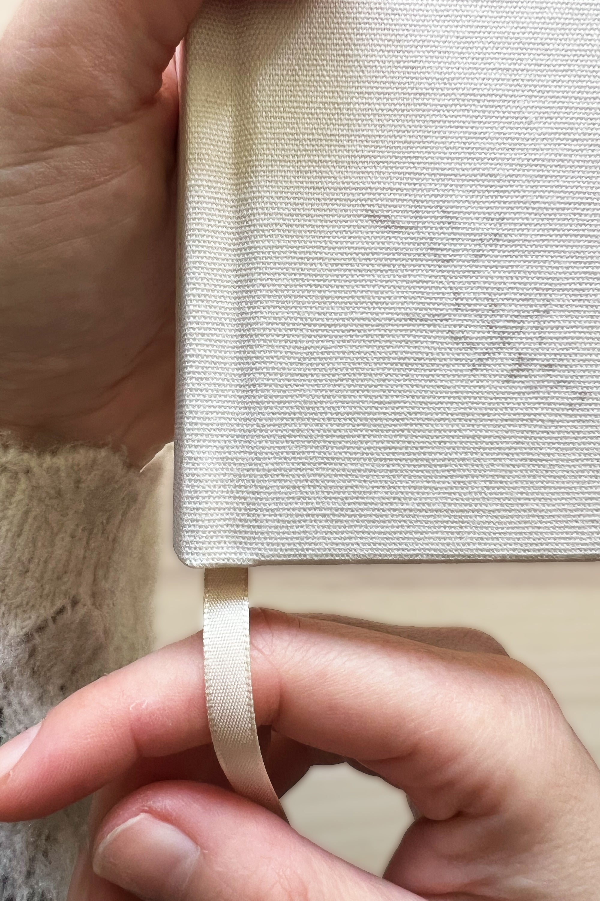 An elegant silk ribbon marker, thoughtfully designed to help you easily return to the pages that matter most.